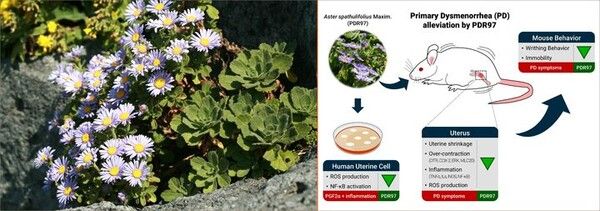 이번에 박 박사팀은 동물실험과 세포실험을 통해 해국 추출물이 염증 신호전달의 핵심경로(NF-κB/COX-2)를 억제해 자궁근 수축을 조절, 통증을 줄이는 작용을 규명했다.