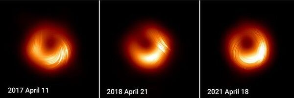 이번 블랙홀 영상은 2021년 관측된 자료다. 인류 최초 블랙홀 사진을 공개한 2017년과 그 이듬해 2018년 자료에 이어 3년 후의 블랙홀 모습을 보여줬다.