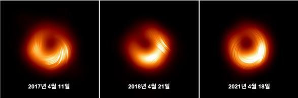뉴시스 보도에 따르면, 16일 UNIST에 따르면 사건지평선망원경(EHT·Event Horizon Telescope) 국제 공동 연구진은 이날 2017년 이후 4년에 걸쳐 찍은 블랙홀 영상에서 자기장 패턴이 뒤집힌 사실을 확인했다.