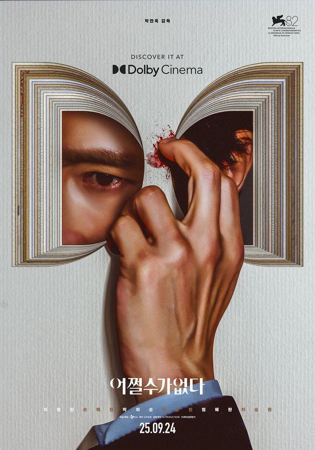그런가 하면 다음주 개봉을 앞둔 박찬욱 감독 신작 〈어쩔수가없다〉도 차례차례 콘텐츠를 풀고 있습니다. 영화는 메가박스에만 있는 돌비시네마 상영까지 확정했어요. 돌비 비전과 돌비 애트모스가 기술적으로도 작품을 더 빛내 줄 전망입니다. 이에 맞춰 공개된 돌비시네마 포스터 역시 〈호프〉 티저 포스터 만큼 강렬한 인상을 줘요. 종이 틈 사이로 보이는 만수(이병헌)의 눈빛은 물론, 관자놀이를 두드리는 손끝의 붉은 핏자국이 미스터리를 자아냅니다.