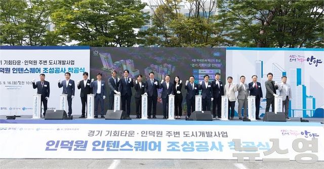 경기도는 16일 안양 인덕원 환승주차장에서 김동연 경기도지사, 최대호 안양시장, 국회의원과 도·시의원, 경기주택도시공사(GH), 안양도시공사, 지역주민 등 100여 명이 참석한 가운데 ‘경기 기회타운 인덕원’ 착공식을 가졌다.