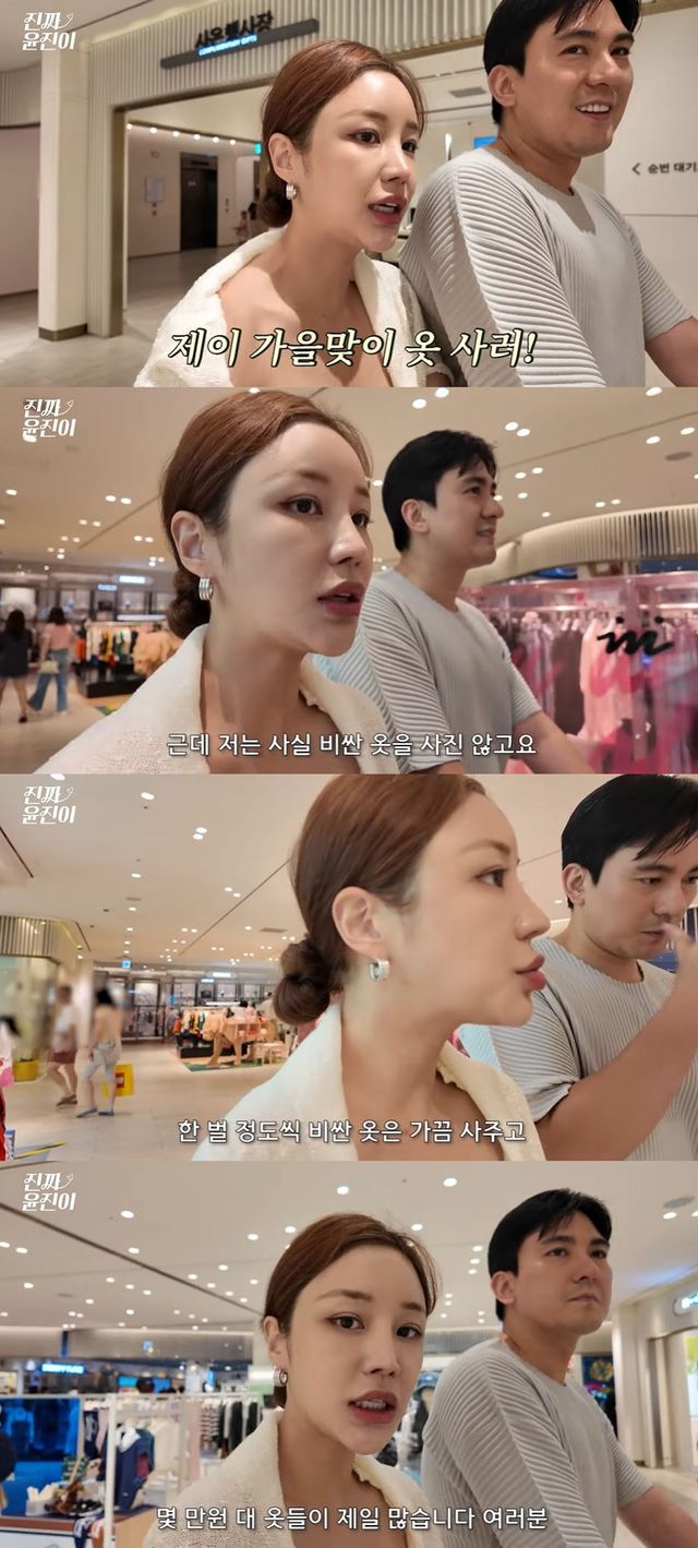 영상에는 윤진이가 남편과 함께 백화점 쇼핑에 나선 모습이 공개돼 눈길을 끌었다.