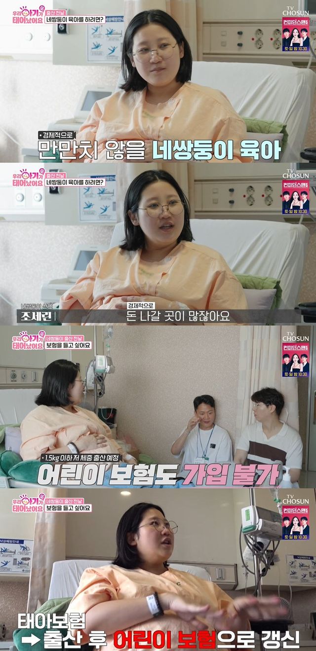 배아 세 개를 이식했지만 난황이 분열돼 네 쌍둥이를 임신하게 됐다는 산모는 이날 방송에서 '네 쌍둥이 산모'로서 겪은 고충에 대해 털어놨다. 산모는 "돈 나갈 곳이 많다. 당장 병원비만 해도 4배다"라고 밝혀 안타까움을 자아냈다. 또 태아보험 가입도 어렵다고 알려졌다.