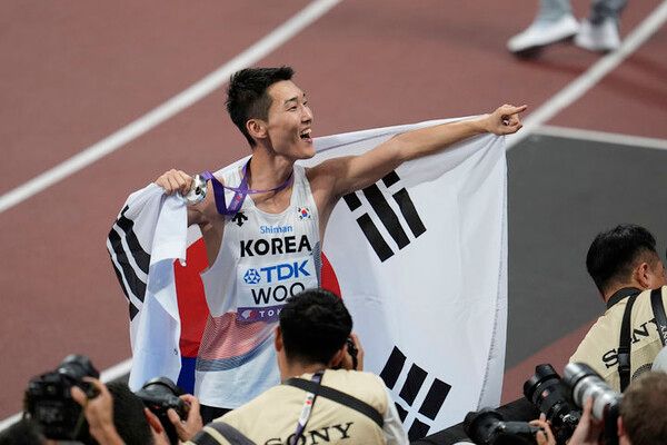 우상혁은 첫 금메달은 실패했으나, 한국 육상 최초로 세계선수권대회에서 메달 2개를 따내는 새 역사를 썼다.