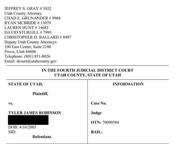 유타주 검찰은 보수 활동가 찰리 커크의 총격 사건 용의자 타일러 로빈슨을 16일 ‘가중 살인’ 등 7가지 혐의로 기소했다.
