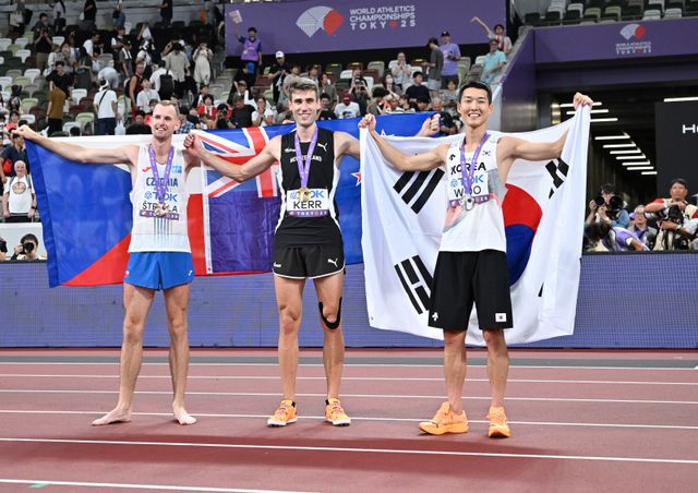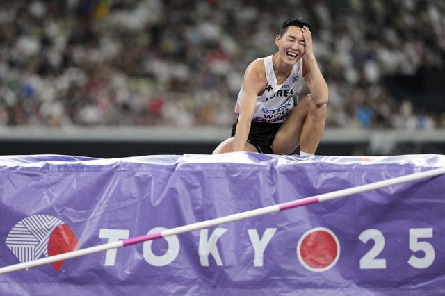 우상혁은 16일 일본 도쿄 국립경기장에서 열린 2025 세계육상선수권대회 남자 높이뛰기 결선에서 2m34를 넘어 2위에 올랐다. 2024 파리 올림픽 챔피언 해미시 커(뉴질랜드)가 2m36을 넘고 우승을 차지했다.