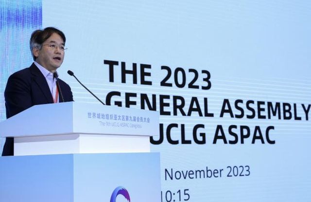 | ▲ ‘2023 제9차 UCLG ASPAC 이우시 총회’에서 차기 총회 고양시 유치 제안한 이동환 고양특례시장 |