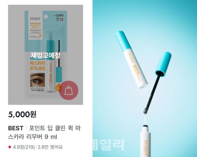 포인트 딥 클린 퀵 마스카라 리무버는 지난 6월 다이소에 선보인 이후 사용 후기를 담은 SNS 콘텐츠를 통해 소비자들에게 입소문을 탔다. 그 결과 론칭 3주 만에 다이소몰 입고 물량이 품절된데 이어 지난 9월 초 온·오프라인 전체 공급물량인 5만개가 모두 소진되는 등 완판 행진을 이어갔다.