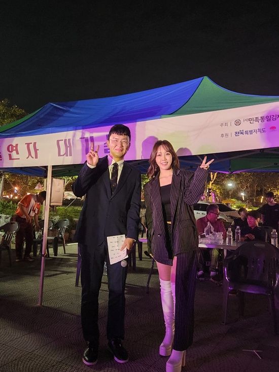 진혜진과 장군은 지난 13일 전라북도 김제향교에서 열린 제1회 대한민국 통일가요대전’에서 초대가수로 참여해 무대를 빛냈다. 이날 사회는 개그맨 윤형빈이 맡아 재치 있는 입담과 매끄러운 진행으로 분위기를 한층 끌어올렸다.
