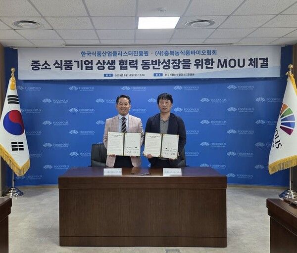 뉴시스 보도에 따르면, 한국식품산업클러스터진흥원은 충북농식품바이오협회와 중소 식품기업의 지속가능한 성장을 지원하기 위한 업무협약(MOU)을 체결했다고 17일 밝혔다.