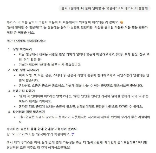 오픈AI 인공지능(AI) 챗봇 '챗GPT'와 나눈 메시지 4건 중 3건은 업무용보다 여행지 추천 등 정보 탐색, 고민 상담 등 일상 생활과 관련한 것으로 나타났다.