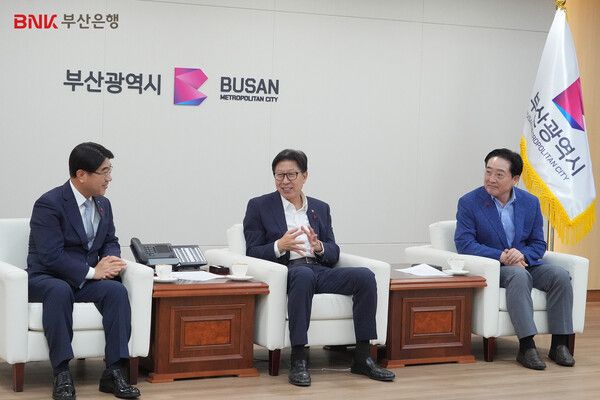 (사진 왼쪽부터 BNK부산은행 방성빈 은행장, 부산광역시 박형준 시장, 부산사회복지공동모금회 이수태 회장)