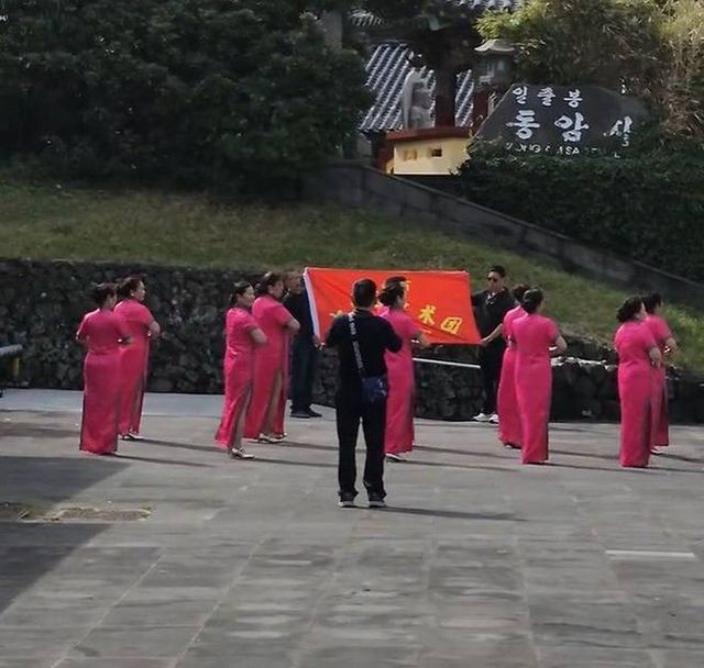 중국 전통 의상인 치파오를 입은 여성들이 제주도 성산일출봉 인근에서 떼거리로 춤을 추는 장면이 포착돼 갑론을박이 일고 있다.