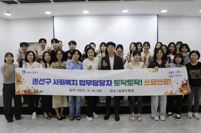 [와이뉴스] 수원시 권선구는 지난 16일, 일월수목원에서 권선구 사회복지 담당 직원 30명이 참여한 가운데 2025년 하반기 권선이음을 실시했다.