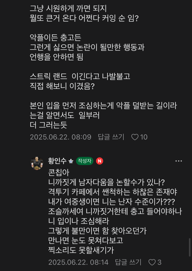 같은시각 황인수는 김동현 저격하다가 키배뜨고 활정