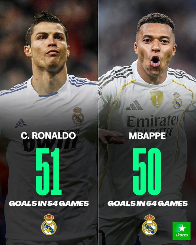 한편 음바페는 레알 구단 역사상 두 번째로 빨리 50호 골 고지를 밟은 선수가 됐다. 이 부문 1위는 크리스티아누 호날두(알 나스르)다. 호날두는 지난 2008~09시즌 레알 유니폼을 입은 뒤 첫 54경기서 51골을 넣으며 구단 역사상 가장 빨리 50득점을 넘어선 선수로 기록돼 있다.