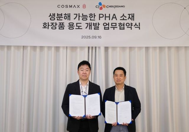 코스맥스는 16일 CJ제일제당과 경기도 성남시 코스맥스 판교 사옥에서 ‘PHA 적용 화장품 용기 개발을 위한 업무협약(MOU)’을 체결했다고 17일 밝혔다.