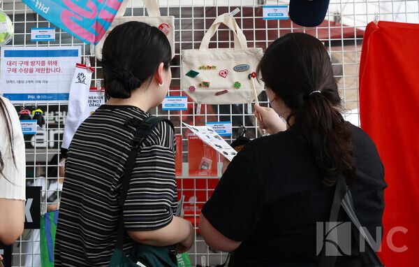 [뉴스컬처 김규빈 기자] 제30회 부산국제영화제(BIFF) 개막식을 앞둔 17일 오후 1시 부산 해운대구 영화의전당 일대에서 영화팬들이 기념품을 둘러보고 있다.