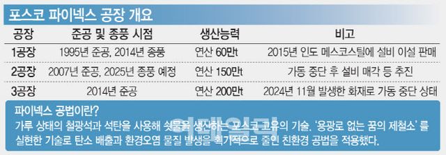 포스코가 원가 구조를 재정비하고 고부가 제품으로 전환하려면 파이넥스 가동을 축소·정리하는 선택이 불가피했다는 분석이다. 업계 한 전문가는 “글로벌 가격 경쟁 심화 국면에서 150만~200만t급 파이넥스는 400만t 이상 대형 고로 대비 유지·관리 비용 부담이 컸을 것”이라고 설명했다. 포항제철소의 연간 쇳물 생산능력은 약 1568만t으로 이 가운데 고로가 1218만t(2고로 200만t·3고로 488만t·4고로 530만t)을, 2·3파이넥스가 350만t을 각각 차지하고 있다.