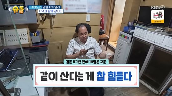 김윤지는 "저기가 저희 빌라에 사랑방 같은 느낌이다. 소장님인 줄 알고 인사하면 아버님일 때도 종종 있다"라고 설명했다. 이상해는 "같이 산다는 게 참 힘들다"라고 토로했다.