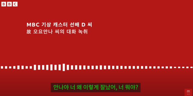 지난 16일 유튜브 채널 ‘BBC News 코리아’에는 ‘고 오요안나 1주기, 엄마가 공개한 죽음의 기록’이라는 제목의 영상이 공개됐다.