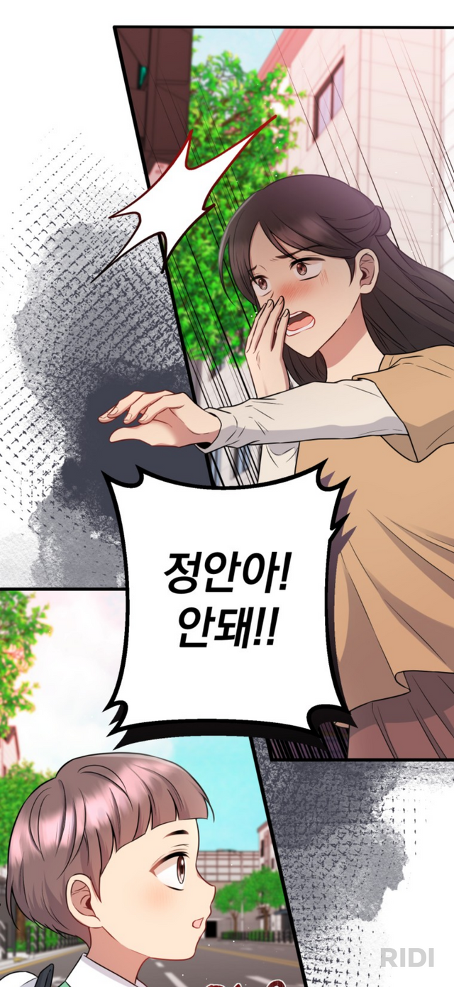그 순간 아이가 차에 치일 뻔하고, 여주가 달려듭니다.