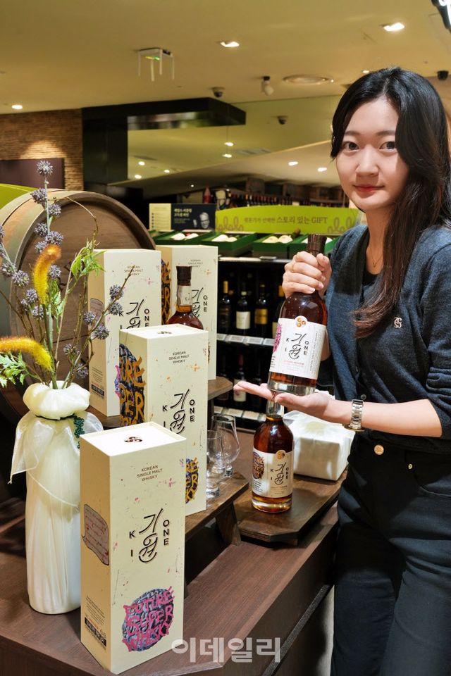 롯데백화점은 이번 추석 선물세트로 한국 최초 싱글몰트 위스키 브랜드 ‘기원’과 배우 겸 화가인 ‘박기웅’ 작가가 협업한 한정판 아트 위스키 ‘기원X박기웅 스페셜 리저브’ 2종(각 25만원)을 단독 출시했다. 45년 경력의 기원 위스키 마스터 디스틸러(증류주 생산자) ‘앤드류 샌드’가 엄선한 원액을 사용했으며, 셰리 캐스크와 뉴오크 캐스크에서 각각 숙성된 두 가지 싱글몰트로 구성됐다. 두 병을 나란히 배치하면 박기웅 작가의 유화 작품 ‘온 더 락스’가 완성되는 디자인이 특징이다.