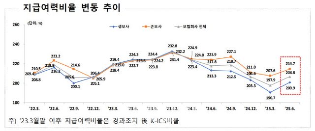 요구자본은 같은 기간 126조원으로 소폭 증가했다. 금리 상승으로 해지위험액이 2조5000억원 확대됐으나 금리위험액이 2조원 줄면서 대부분 상쇄됐다.