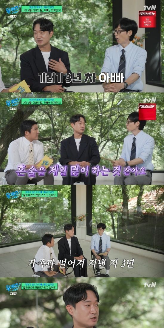 (엑스포츠뉴스 오수정 기자) '유퀴즈'에서 배우 조우진이 현재 기러기 아빠 생활을 하고 있음을 고백했다.