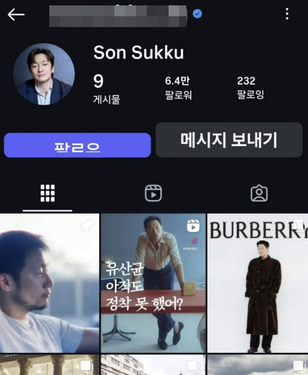 손석구는 18일 자신의 개인 채널에 "사칭 계정 캡처 사진"이라며 한 SNS 계정 피드를 캡처해 업로드했다.
