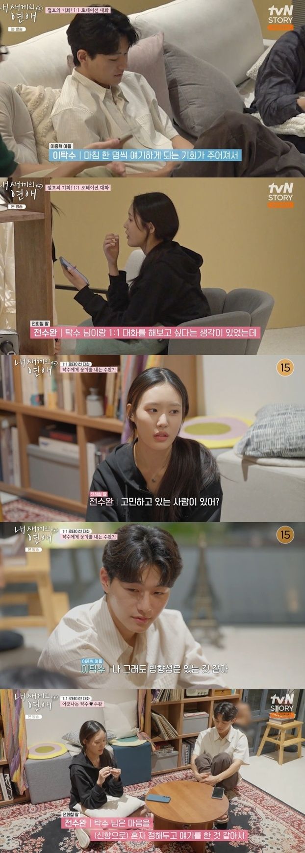 전수완은 "탁수 님이랑 1:1 대화를 해보고 싶다는 생각이 있었는데 먼저 불러내서 1:1 대화를 못했을 거 같아서 (좋았다)"며 기대감을 보였고, 이신향은 역시 "더 늦기 전에 솔직하게 서로 마음의 이야기를 한번 해보는 시간을 가지면 좋겠다"며 대화를 고대했다.