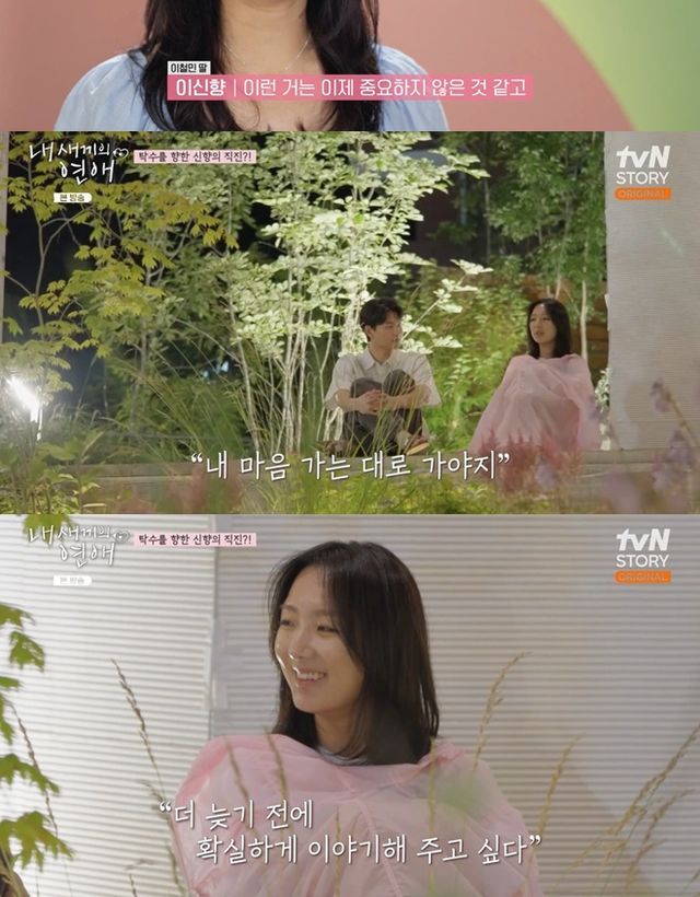 아쉬움을 남긴 채 전수완과의 대화가 끝나자, 곧바로 이신향과 이탁수의 대화가 이어졌다. 이신향은 "그 사람의 마음이나 다른 사람들의 시선이나 이런 거는 이제 중요하지 않은 것 같다. '내 마음 가는 대로 가야지!' 더 늦기 전에 확실하게 이야기 해주고 싶다"며 이탁수를 향한 직진을 예고했다.