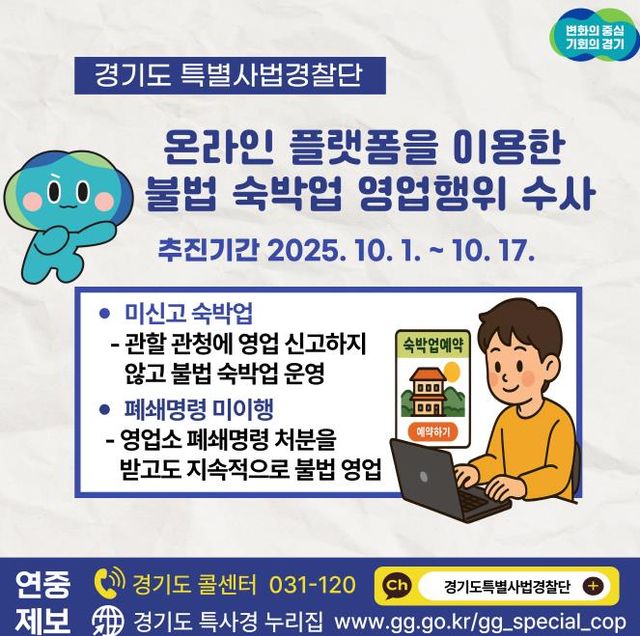 | ▲ 경기도 특사경, 온라인 숙박 플랫폼을 통한 불법 숙박업 영업행위 집중 단속 |