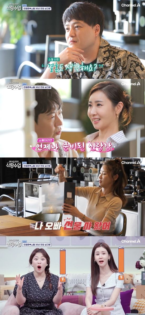 17일 방송된 채널A '요즘 남자 라이프-신랑수업'(이하 '신랑수업')에서는 천명훈이 노유민에게 소월을 소개하는 자리가 마련됐다.