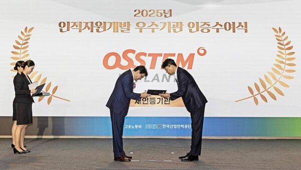 뉴시스 보도에 따르면, 오스템임플란트는 지난 16일 한국산업인력공단 주최로 서울 페어몬트 앰배서더 호텔에서 열린 ‘2025년 인적자원개발 우수기관 인증 수여식’에서 인증서 및 인증패를 받았다고 18일 밝혔다.