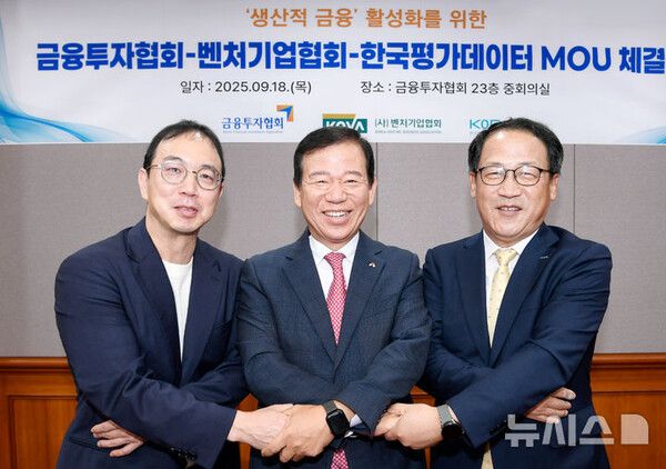 금융투자협회는 18일 벤처기업협회, 한국평가데이터와 '자본 시장 기반의 생산적 금융 확대를 위한 업무협약(MOU)'을 맺었다고 밝혔다.
