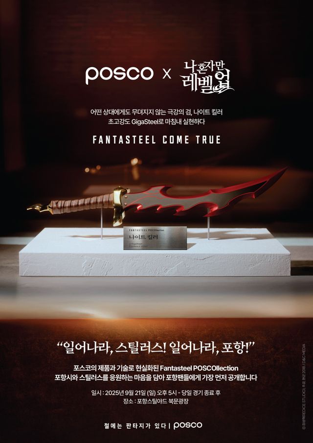 북문광장에선 포스코와 인기 웹툰 ‘나 혼자만 레벨업(이하 나혼렙)’이 협업한 포스콜렉션(POSCOellction) 전시가 팬들을 기다린다. 포스콜렉션에는 포스코의 제품과 기술을 통해 실물로 구현한 ‘나혼렙’ 등장 아이템 3종이 전시된다. 아이템 제작에는 차세대 강판인 PosMAC Super와 GigaSteel, 탄소 대신 물을 배출하는 수소환원제철기술 HyREX가 활용됐다. 전시 포토존에서 SNS 이벤트에 참여하면 ‘POSCO x 나혼렙’ 한정판 경품도 얻을 수 있다. 포스콜렉션은 스틸야드를 시작으로 서울 롯데월드타워(10.16-26), 포항 파크1538(10.29-11.4), 광양 파크1538(11.7-18)에서 순회 전시 예정이다.