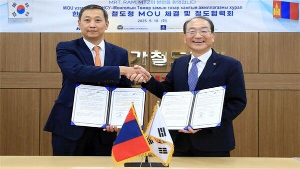 뉴시스 보도에 따르면, 국가철도공단은 대전 본사에서 몽골 철도청과 철도분야 협력 강화를 위한 양해각서(MOU)를 체결했다고 18일 밝혔다.