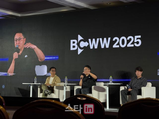 이명한 에그이즈커밍 대표가 18일 서울 삼성동 코엑스 컨퍼런스룸에서 진행된 ‘2025 국제방송영상마켓’(2025 BCWW) 컨퍼런스 세션에서 인공지능(AI)에 대한 생각을 전했다.