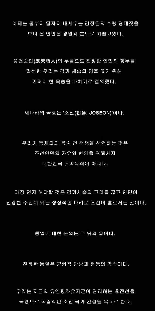 김정은을 제거하고 국호를 '조선'으로 바꾼 후,