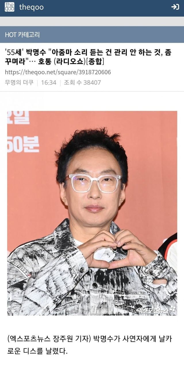 노녀 사연자한테 아줌마 라고 했다고 ㅋㅋㅋ 지금 40대 여초 더쿠에서 박명수 욕하고 난리남 ㅋㅋ