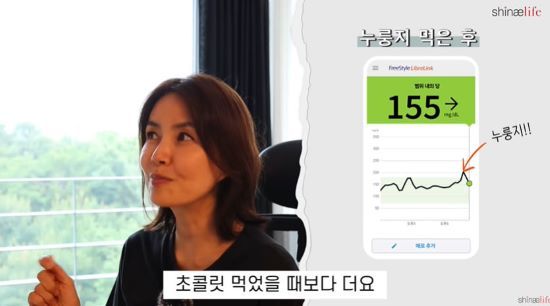 신애라가 공개한 '혈당이 팍 오르는 음식' 두 가지는 누룽지와 김밥. 신애라는 야채, 나물, 생선과 함께 누룽지를 끓여 먹었더니 자신의 기록중에 그날이 혈당이 제일 높았다고 밝혔다. 그러면서 "초콜릿 먹었을 때보다 더 높았다"고 덧붙여 놀라움을 자아냈다. 이어 "두번째로 당이 오른 경우는 바로 김밥을 먹었을 때였다"라고 전했다.