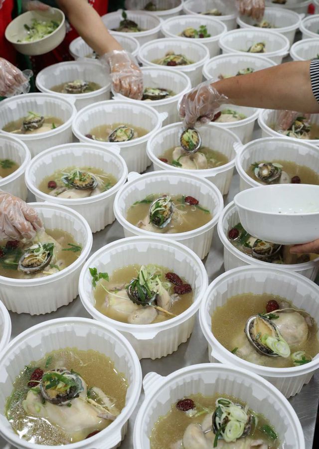 삼계탕 위에 올라가는 전복들. / 뉴스1