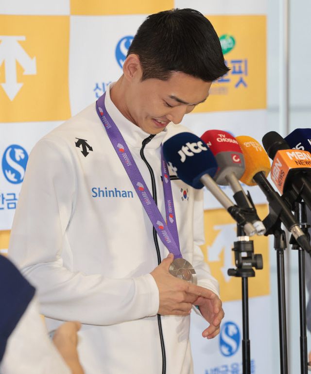 우상혁은 18일 오후 김포공항을 통해 입국한 뒤 “8월에 다치지 않았다면 더 높은 기록으로 금메달에 도전할 수 있었을 것”이라며 “다행히 종아리 상태가 90% 회복됐고, 남은 에너지를 모두 쏟아 시상대에 설 수 있었다”고 돌아봤다.