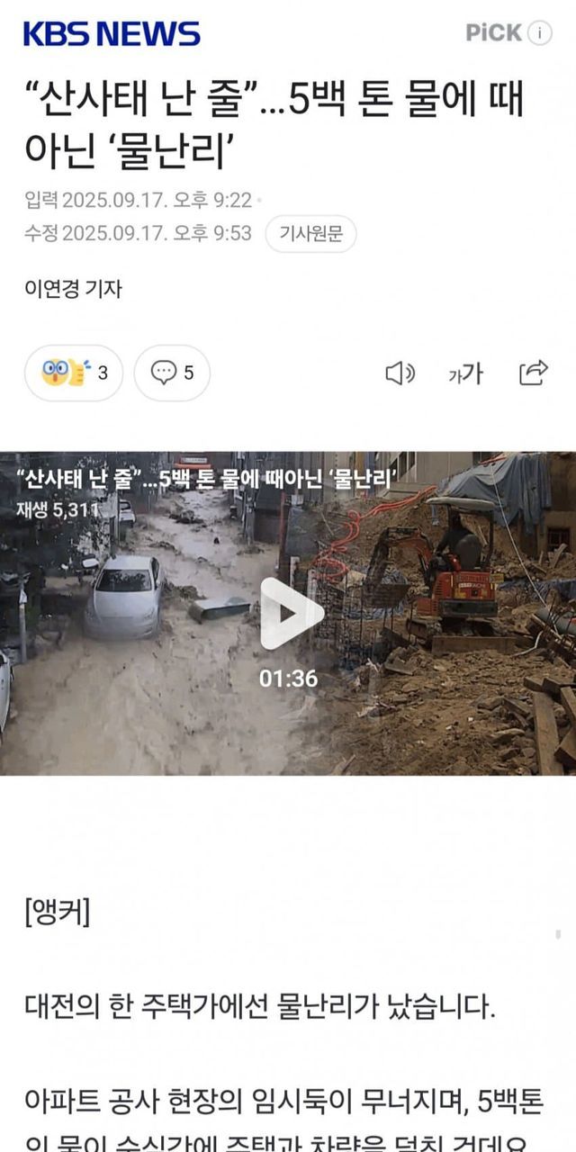 “산사태 난 줄”…5백 톤 물에 때아닌 ‘물난리’