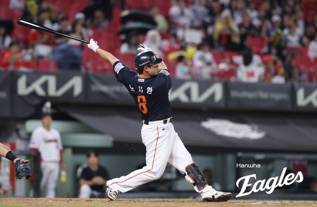 노시환은 두 팀이 0-0으로 팽팽하게 맞선 4회초 2사에서 KIA 선발 아담 올러의 2구 148km/h 직구를 통타, 좌중간 담장을 넘기는 솔로 아치를 그렸다. 노시환의 시즌 32호 홈런. 비거리는 130m로 측정됐다.