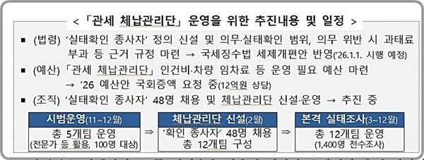 우선 올해 4분기에 고액 체납자 100명을 대상으로 시범운영을 실시하고 2026년 3월부터 본격적인 전수조사에 착수한다.