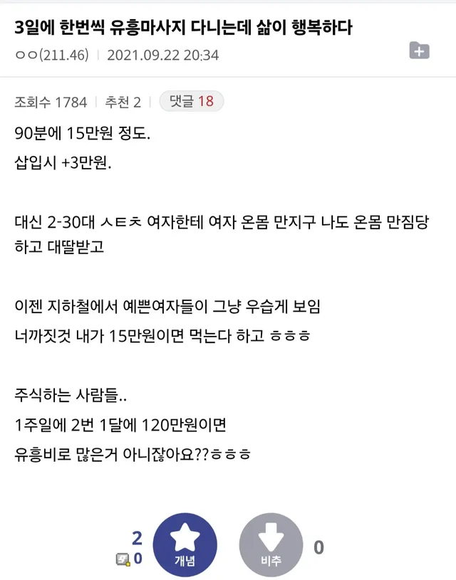 유흥에 빠져서 한달에 1번 가다가 일주일에 1번 가게 되고
