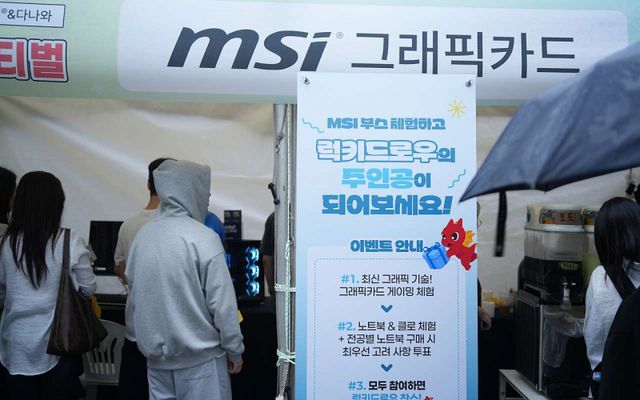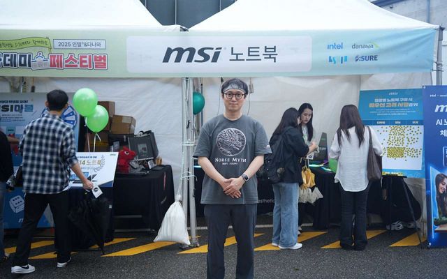 숭실대학교 중앙광장에서 열린 다나와 아카데미 페스티벌 현장. 39년 역사를 지닌 글로벌 하드웨어 기업 MSI도 부스를 마련했다. 노트북 마케팅을 맡고 있는 정택민 팀장은 “MSI는 세계적으로 잘 알려진 게이밍 하드웨어 브랜드다. 국내에서는 삼성, LG 같은 대기업 브랜드를 접할 기회가 많지만 MSI 같은 글로벌 게이밍 브랜드는 직접 체험하기 쉽지 않습니다. 이런 현장을 통해 학생들에게 실제 제품을 보여주고, 브랜드와 가까워질 기회를 제공하고 싶습니다.” 참가 취지를 설명햇다.