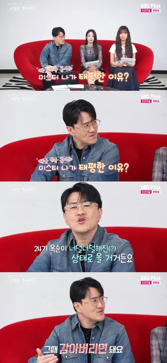 이어 그는 "24기 옥순 씨가 너덜너덜해진 상태로 올 거다. 그때 감아버리면 된다. 미스터 나는 큰 그림을 가지고 있다"라며 앞선 미스터 권과의 데이트에서 좋은 결과를 내지 못한 24기 옥순을 언급했다.